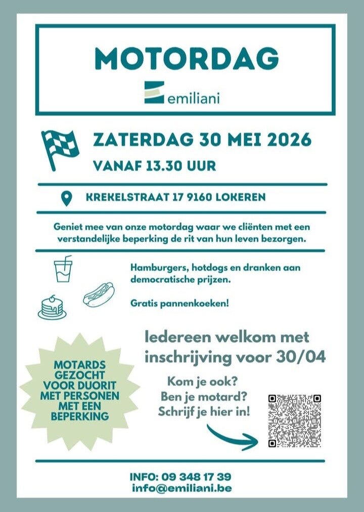 Zaterdag 30 Mei : Motordag Krekelstraat 17 9160 Lokeren rondrit met mensen met een beperking.