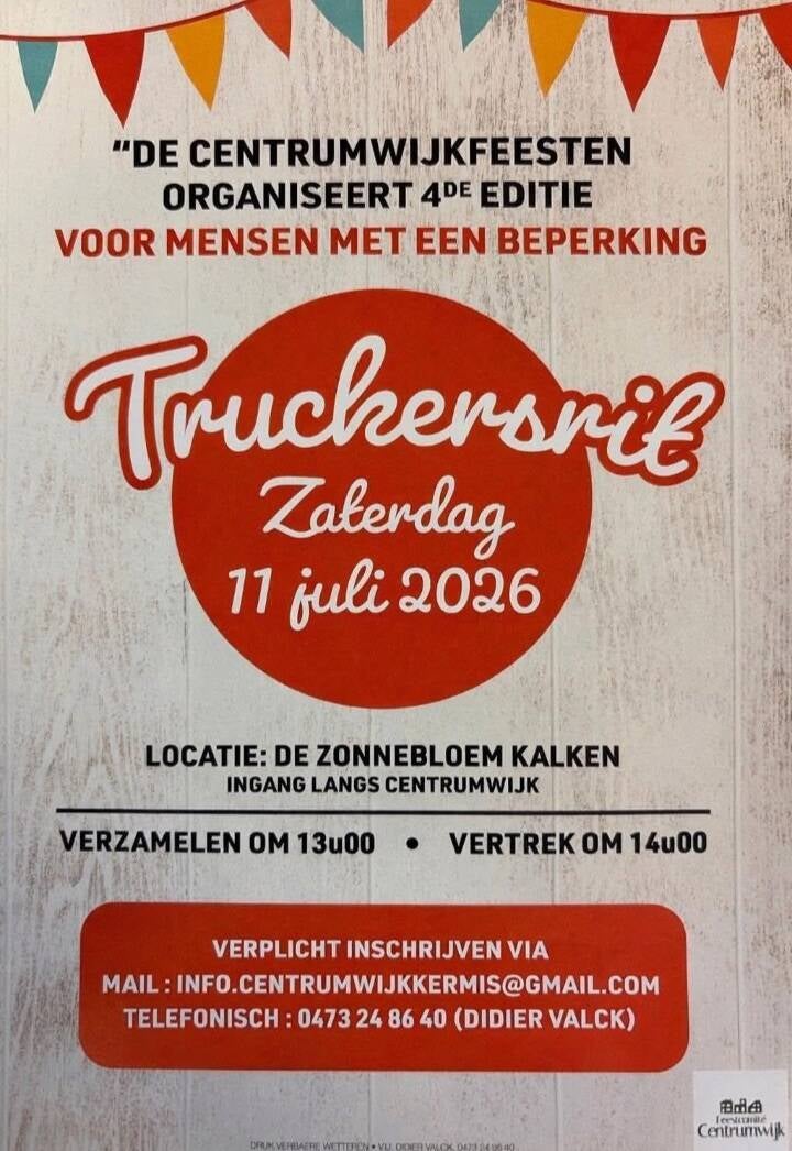 Zaterdag 11 Juli : Centrumwijk feesten truckbegeleiding voor mensen met een beperking. Info volgt later.